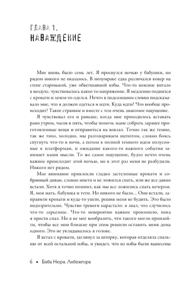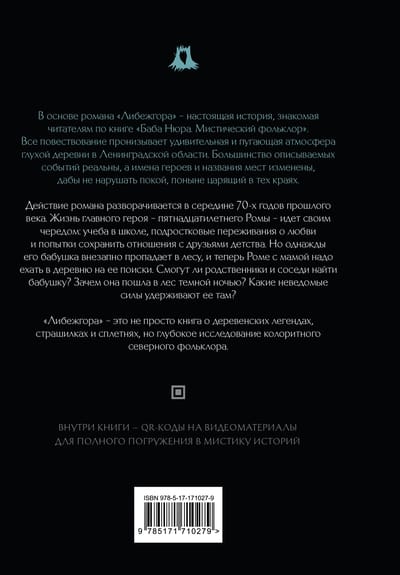 The novel "Libezhgora" is based on a true story, familiar to readers from the book "Baba Nyura. Mystical Folklore". The entire narrative is permeated with the amazing and frightening atmosphere of a remote village in the Leningrad region. Most of the events described are real, and the names of the characters and places have been changed so as not to disturb the peace that still reigns in those parts.