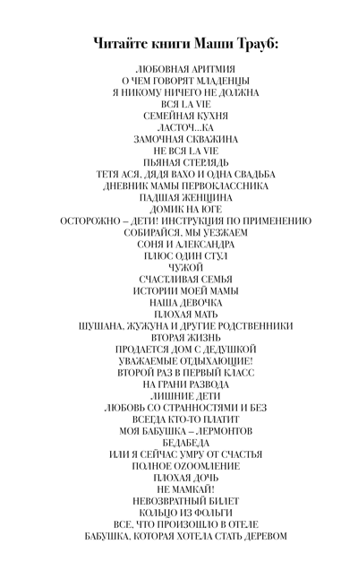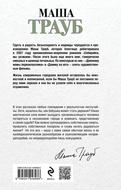 "Grandma, who wanted to become a tree" - a book about people just like you and me. Masha Traub masterfully combines tragic and comic, with ease and humor talks about the most serious things and makes the reader laugh until tears, then sad.