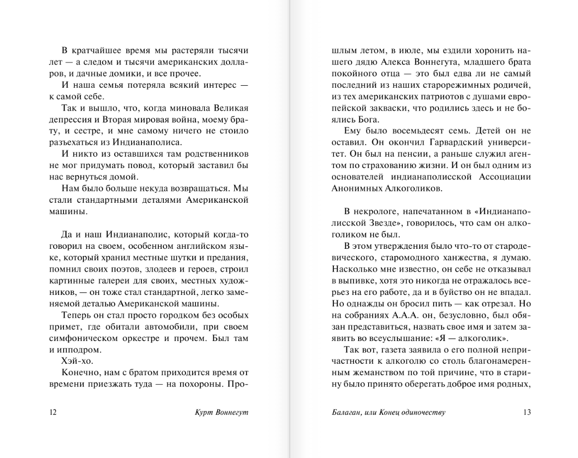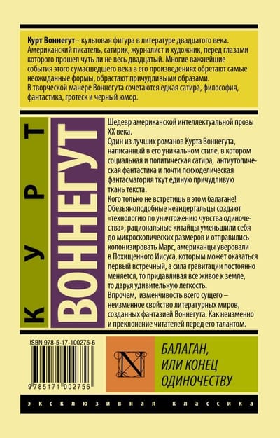 One of the best novels by Kurt Vonnegut, written in his unique style, in which social and political satire, dystopian fiction and almost psychedelic phantasmagoria weave a single bizarre fabric of the text. One can't meet just anyone in this buffoonery. Monkey-like Neanderthals create "technology to destroy the feeling of loneliness", rational Chinese reduced themselves to microscopic size and went to colonize Mars, Americans believe in the Kidnapped Jesus, which may be the first person you meet, and the force of gravity is constantly changing, then pressing all life to the ground, then giving amazing lightness. However, the changeability of all things is an invariable property of literary worlds created by Vonnegut's imagination. Just as readers' adoration of his talent is unchanging.