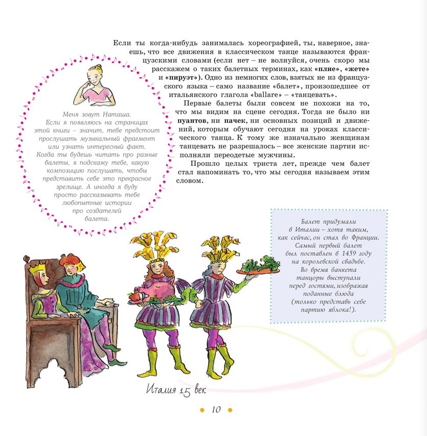 The book will introduce young ballet lovers to the history of this art form, tell them about the most famous performances and the best performers, basic movements, choreography and stage costumes. Readers will not only discover the plots of world ballets, but will also be able to listen to musical excerpts from them.