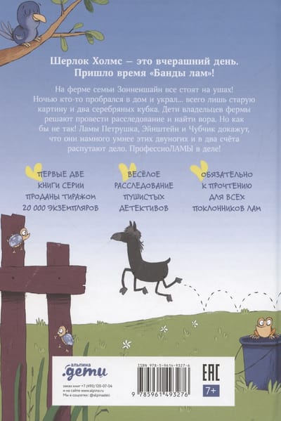 Everyone on the Sonnenshine family farm is on their ears! At night, someone snuck into the house and stole ... just an old painting and two silver cups. They decide to investigate and find the thief. No way! Lamas Petrushka, Einstein and Chubchik will prove that they are much smarter than these bipeds and will solve the crime in two accounts. Professionals in business!