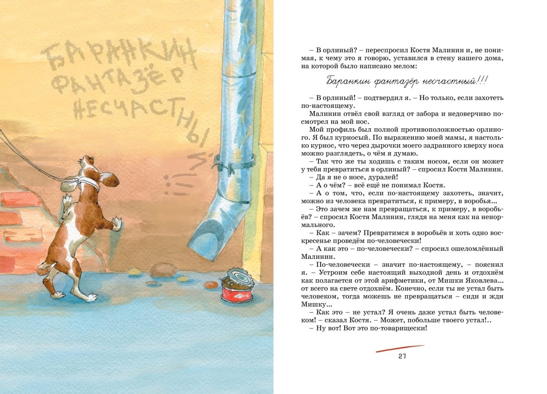 A new school year has begun, and Yura Barankin lets his classmates down almost on the first day. Everyone keeps telling him, "Barankin, be a man!" But he doesn't want to, and he's sick of being a human being. I wish I were a sparrow! You sit on a twig and sing songs. And then Yura Barankin's wish comes true in a fantastic way....