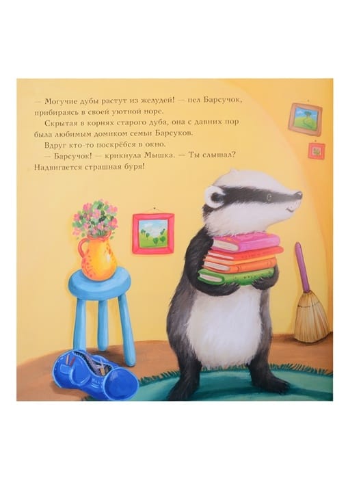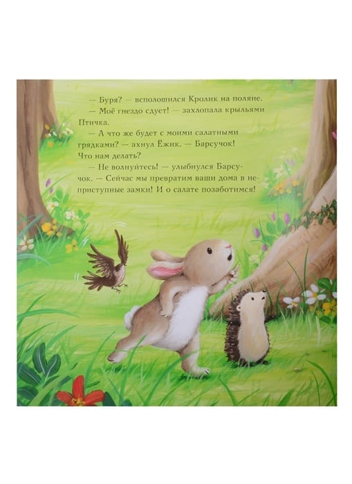 The kind and resourceful Badger is friends with all the animals in his forest. No matter what happens, he will always come to the rescue! This time there is a real storm in the forest and the little animals are worried: what if the strong winds damage their nests, dens and beds? Fortunately, the skillful Badger knows how to protect houses and crops and is happy to teach his friends how to do it. But will he have time to hide from the storm and strengthen his house?...?