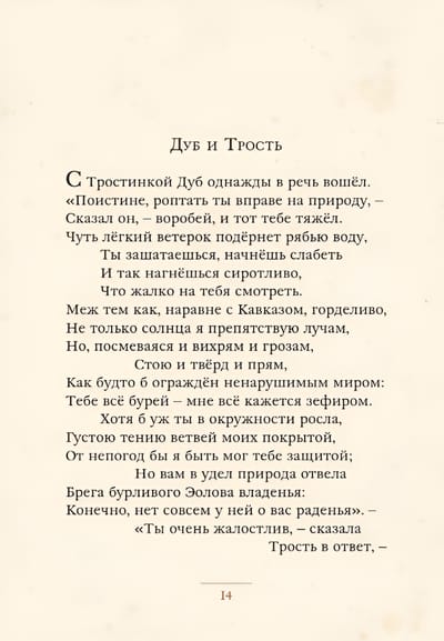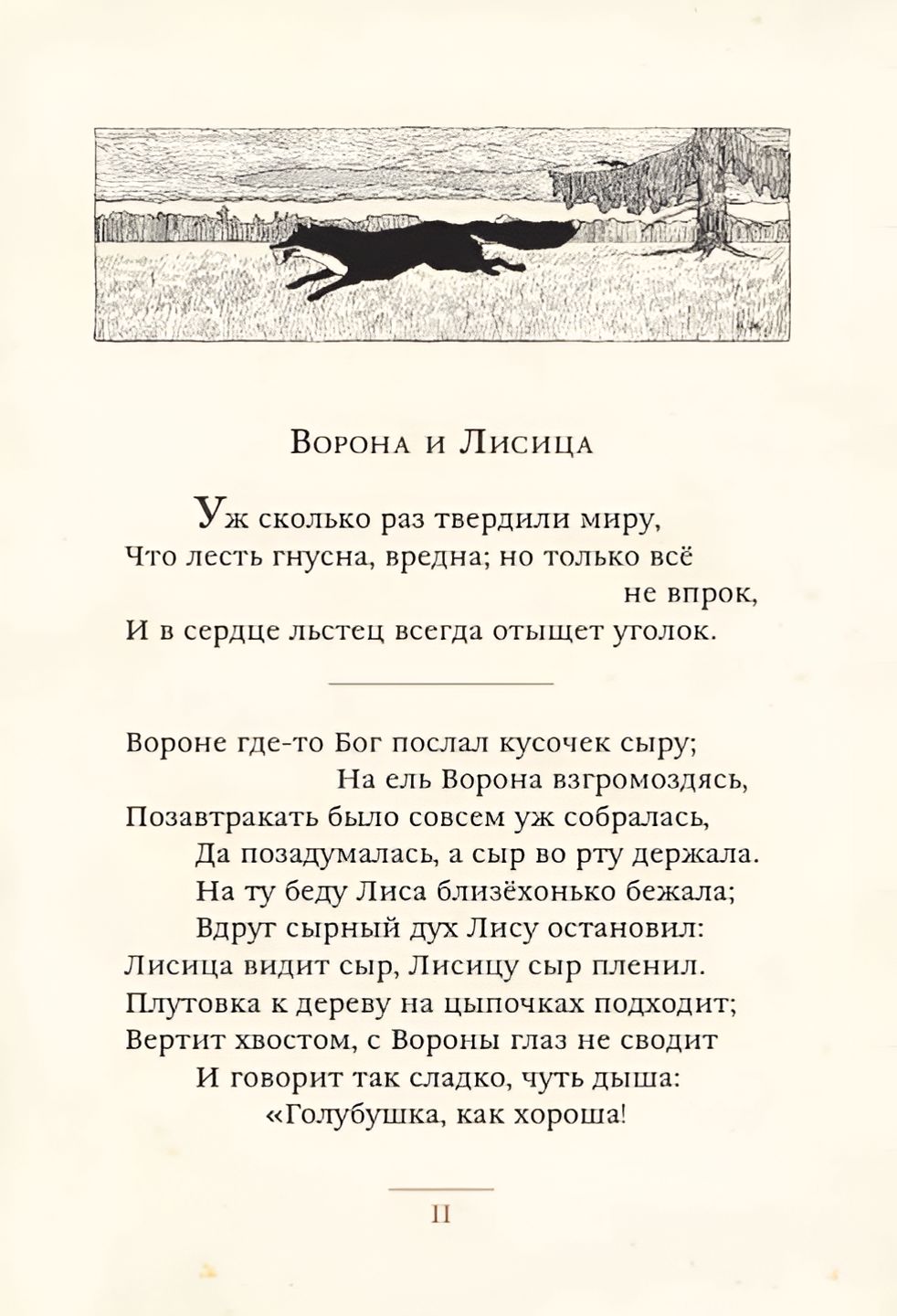 Many people get acquainted with the fables of Ivan Andreevich Krylov in childhood and return to them in adulthood, rereading and discovering new meanings. Their allegorical and poetic nature is understandable to both children and adults. Amazing in their beauty and subtle humor, carrying folk wisdom, they were translated into various European languages.