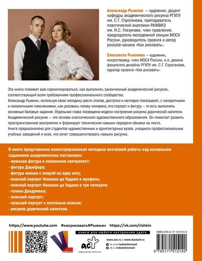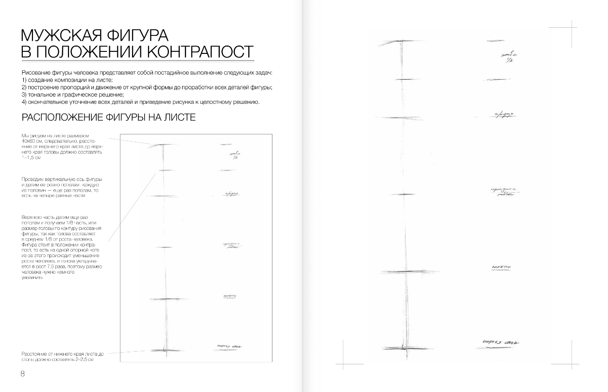 In this book, the author uses his six-stage drawing method. He demonstrates step-by-step and provides clear explanations on how to draw a human head, figure, and portrait—from constructing the skull to drawing from life. A separate section is devoted to the architectural element—the capital—demonstrating the principles for executing each detail. Understanding the approach itself, its sequence, and precise instructions will allow you to achieve skillful execution, depth, integrity, and expressiveness in your work.
