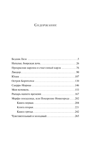 Whether it's a story of tragic love ("Poor Liza," "Liodor") or pure, mutual love ("Natalya, the Boyar's Daughter"), the mysterious island of Bornholm or the pacification of rebellious Novgorod, his stories always center on people, their experiences, and difficult decisions. And in his unique "My Confession," stylized in the style of Rousseau, one can even detect a shameless frankness.