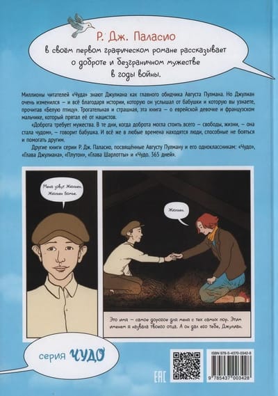 Millions of Miracle readers know Julian as August Pullman's chief abuser. But Julian has changed a lot - all thanks to a story he heard from his grandmother, which you'll discover when you read The White Bird. Touching and scary, this book is about a Jewish girl and the French boy who hid her from the Nazis. "Kindness takes courage. In those days when kindness could cost everything - freedom, life - it became a miracle," says my grandmother. And yet in all times there are people who can be unafraid and help others. Other books in R.J. Palacio's series about August Pullman and his classmates include "Miracle," "Julian's Chapter," "Pluto," "Charlotte's Chapter," and "Miracle. 365 Days."