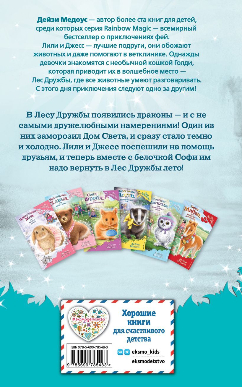 For all lovers of brave little squirrels! Sophie the squirrel's family has long been responsible for the House of Light, which keeps the Forest of Friendship lit. So, together with Lily and Jess, girls from our world, Sophie sets off to save the light! In the magical Forest of Friendship, all the animals can talk, but no magic will help unless you try and learn to be compassionate and responsible.