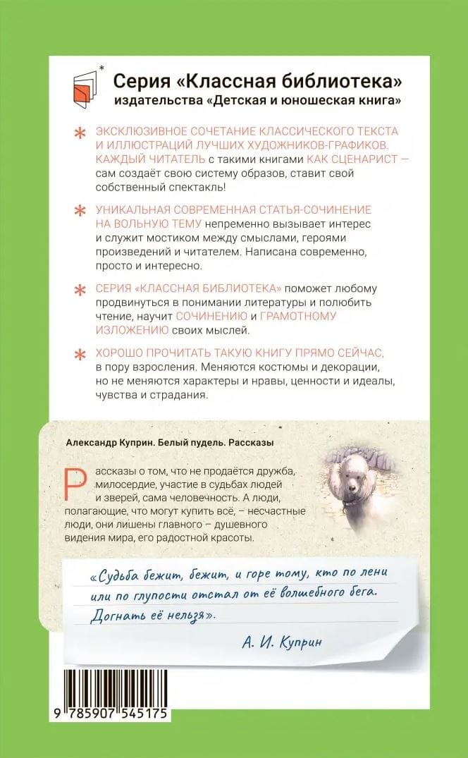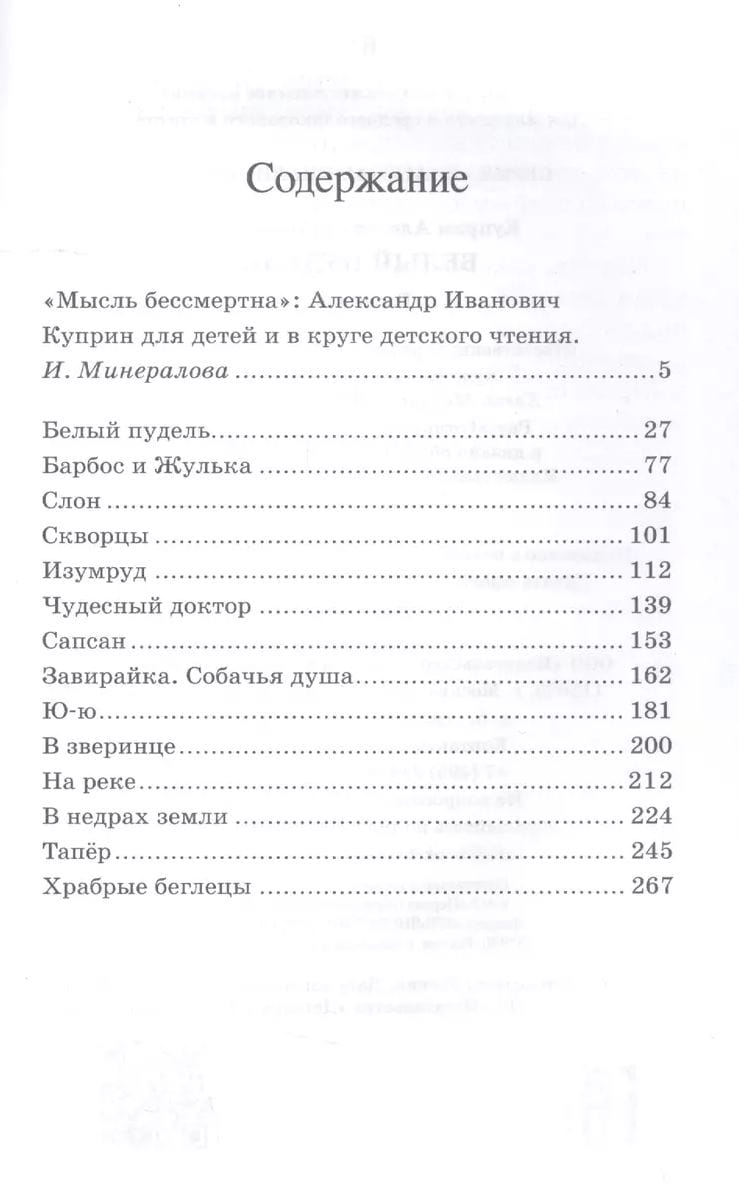 The collection includes wonderful works by the Russian writer Alexander Ivanovich Kuprin (1870-1938). Many heroes of his stories: the yard dog Barbos, cat Yu-yu, white poodle, - existed in reality. Next to them were always children - with different characters and fates. Stories of their lives Kuprin missed through his heart. Probably, therefore, in these stories so much sincerity, pain, nobility, love and compassion for the weak and defenseless.