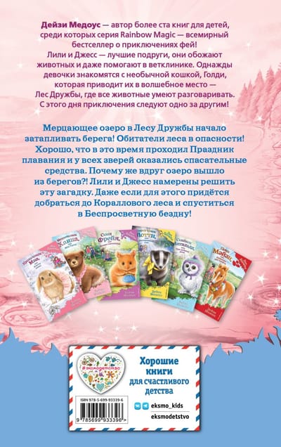 Lily and Jess came to the Swimming Festival in the Forest of Friendship, but something went wrong. The water suddenly began to rise and flood the forest! What happened? The girls are determined to solve this mystery, and Amy the squirrel will help them with this. This book is for those who are afraid of swimming! After all, there is nothing scary about learning! All children dream of finding themselves in a magical land where talking animals live, with whom they can be friends and go on adventures. This story is exactly like that! But no magic will help if you do not learn to be responsive and responsible, if you do not make an effort and try. This book will show the reader how important friendship is and how important it is to rely on yourself. Large font, beautiful black and white illustrations, a fascinating story will appeal to both those children who already love to read and those whose reading skills have not yet been consolidated.