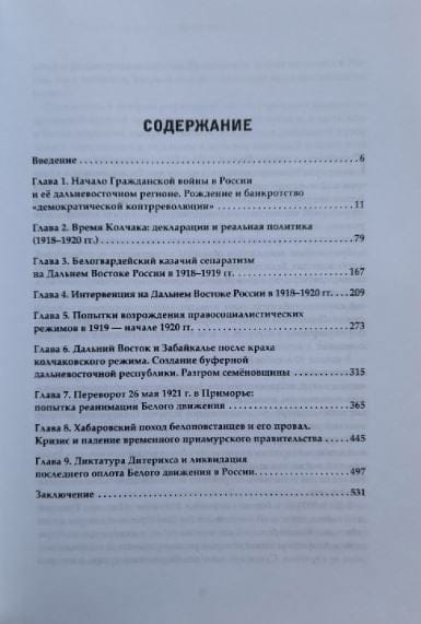 The monograph examines the history of the formation, activity and death of white regimes in the Far East in the era of the most acute social confrontation in Russia. On the basis of a variety of sources analyzes the right-socialist, cadet and monarchist currents and programs, attempts to implement them, shows the reasons for the collapse of anti-Soviet governments in the region.