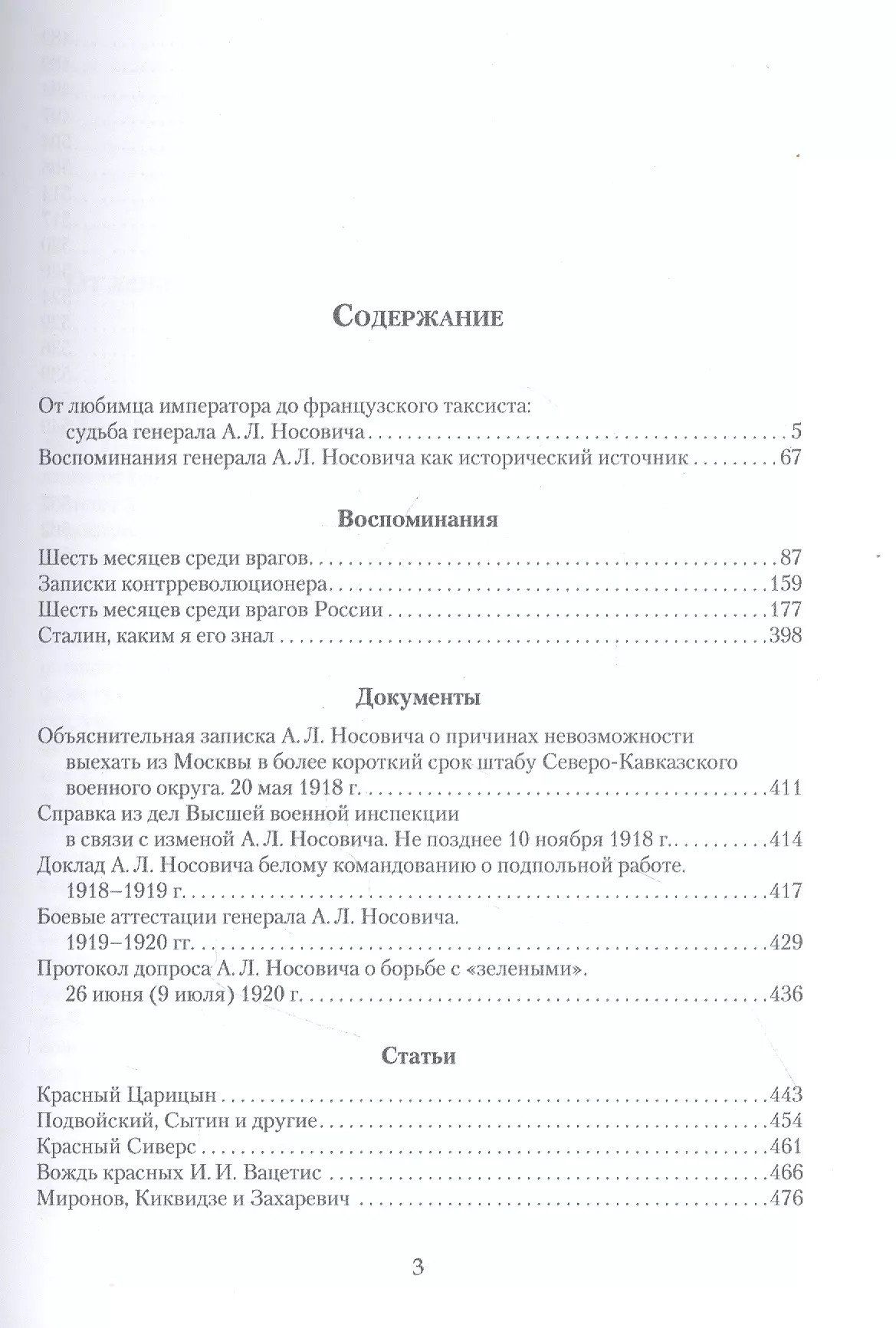 The memoirs of Major General Anatoly Leonidovich Nosovich (1878-1968), a White agent in the Red Army, published for the first time, along with his documents and journalism, provide valuable documentary material for the study of the history of the Civil War in Southern Russia. General A.L. Nosovich in the spring of 1918 was infiltrated into the Red Army on the assignment of the Moscow anti-Bolshevik underground and the French military mission in Russia. In May 1918 he took the responsible post of chief of staff of the North Caucasus Military District in Tsaritsyn. Nosovich, according to his testimony, conducted active subversive work in the Red Army, which was interrupted in August 1918 by the arrest by decision of a member of the Military Council of the district I.V. Stalin. Later Nosovich managed to be released and continued his underground activities as assistant to the commander of the Soviet Southern Front P.P. Sytin. Having exhausted the possibilities for such work, he went over to the side of the Don Cossacks who were fighting the Reds. The Whites did not believe the defector and arrested him. He was later released and rehabilitated, but the important data obtained by Nosovich had become obsolete by that time. The memoirs are published from a manuscript at the Bibliothèque de Documentation Internationale Contemporaine in Nanterre, France. The edition is provided with the author's biography, archaeographical preface and commentary. The book is intended for a wide range of readers interested in the history of our country at a critical time.