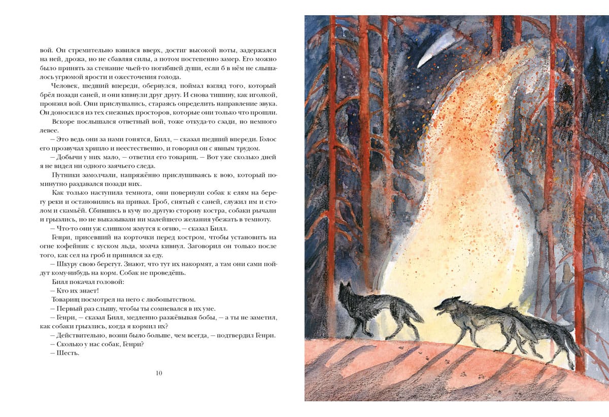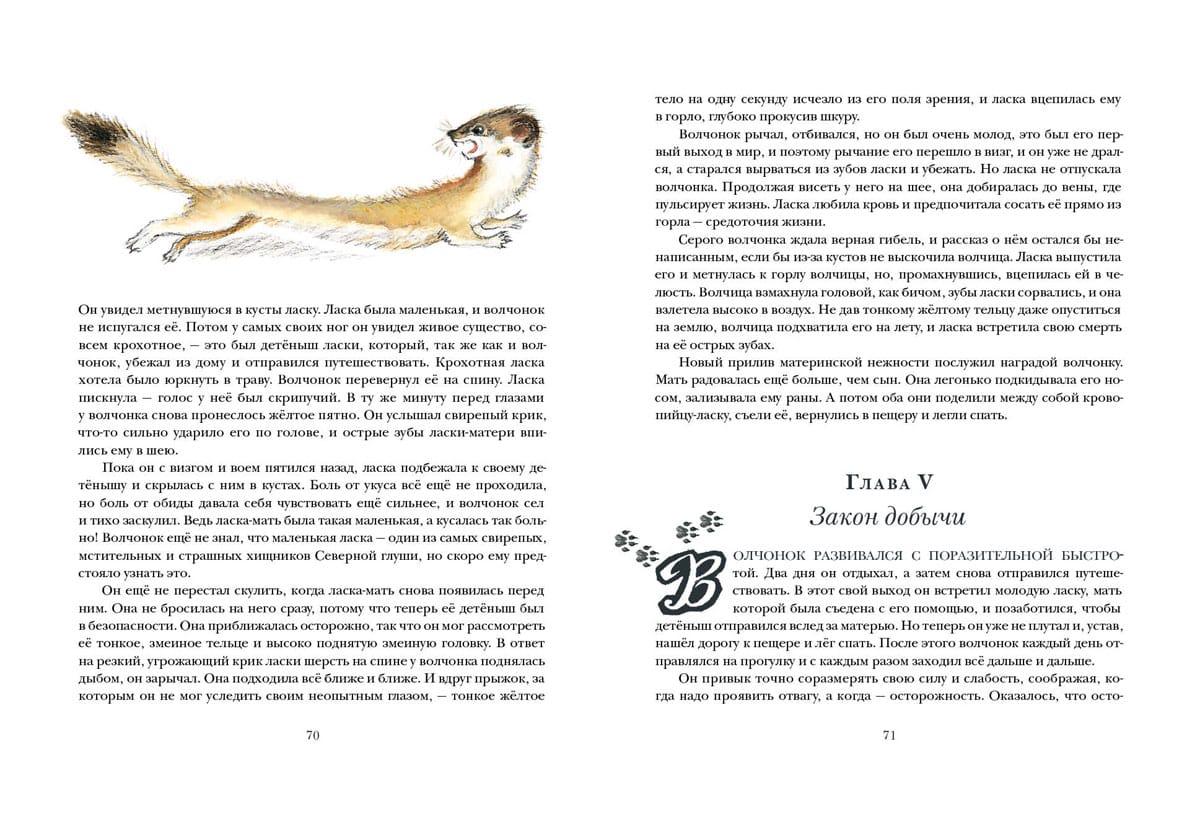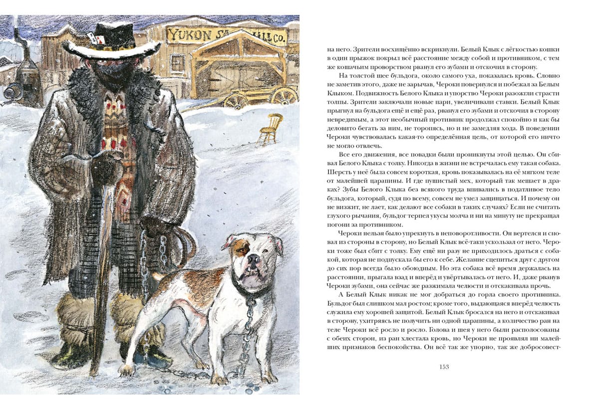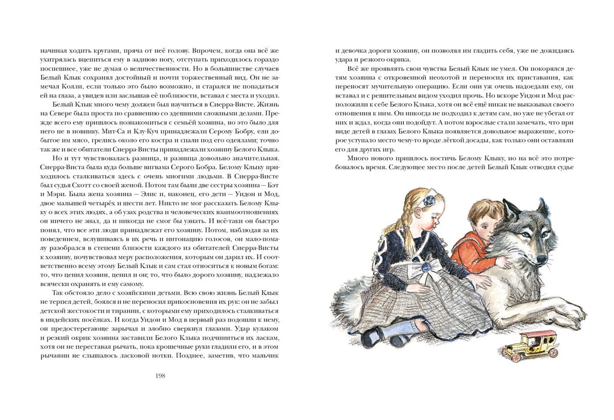 "White Fang" - one of the most famous works of the outstanding American writer Jack London. The book takes the reader to the wild harsh North, where the cold and eternal silence reign, where there are places where no man has ever set foot. The protagonist of this exciting story - a wolf-dog, born in Alaska. Once on the way to the creek, the wolf-dog met a man for the first time - he gave the pup the name White Fang and made him obey him unconditionally. The tame wolf had to go through a harsh school of life - he experienced the perfidy and cruelty of people, enmity and hatred of dogs. But once a man saved the wolf from death by giving him his kindness and affection. Will White Fang be able to believe man again and accept his love? The book is illustrated by contemporary artist Peter Lyubaev.