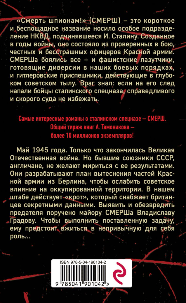 The novels of the series “SMERSH – Stalin’s special forces” are each time a fascinating dynamic plot and new historical knowledge, it is an action film written in simple and understandable language.