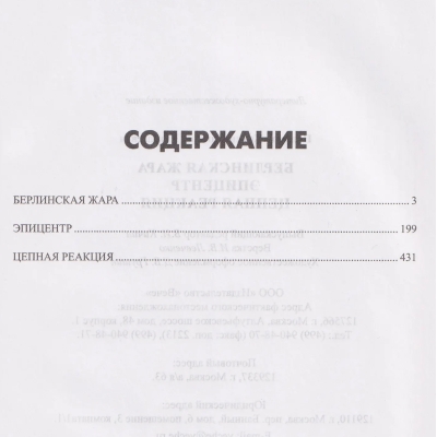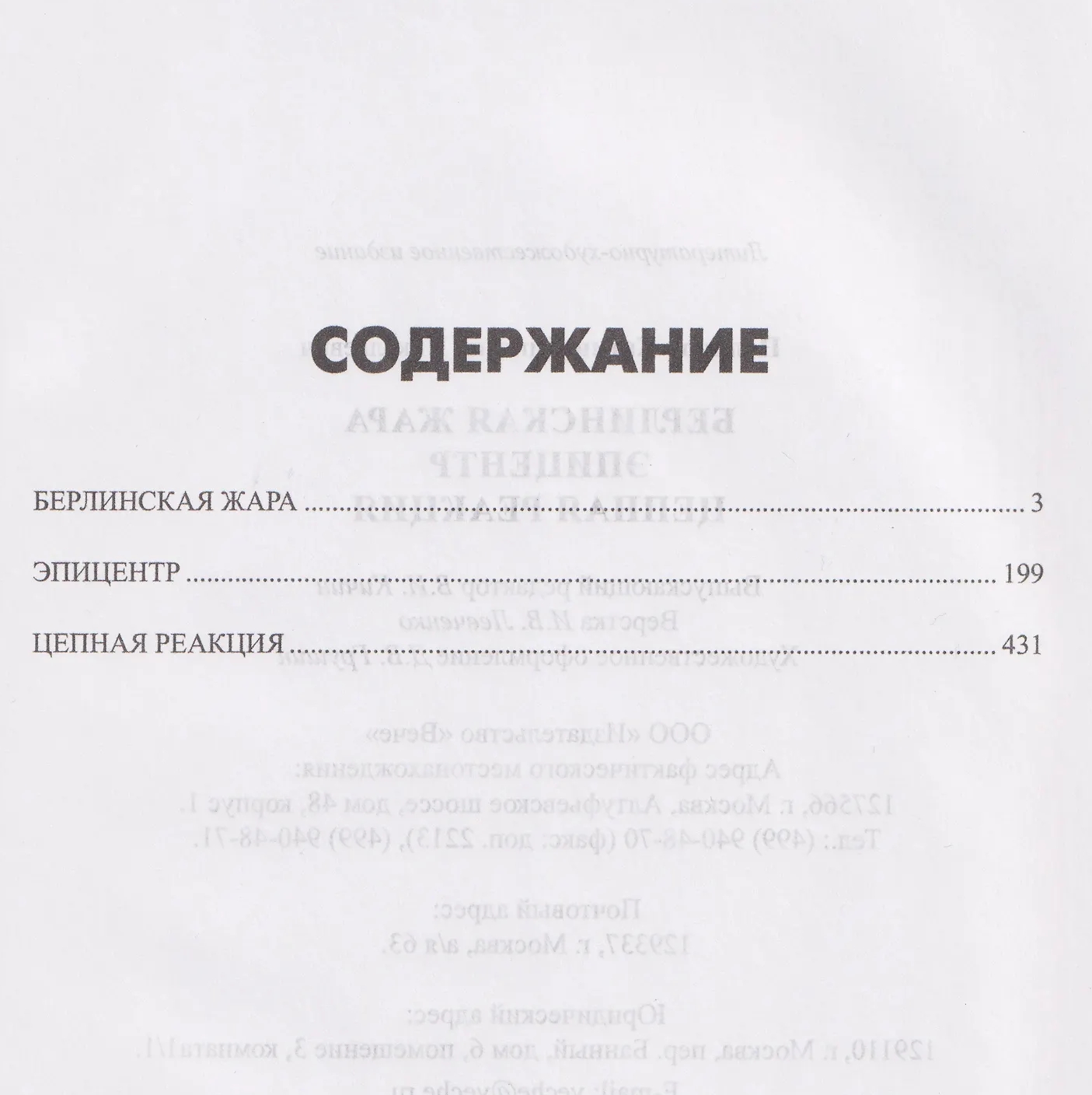 The trilogy of novels "Berlin Heat," "Epicenter," and "Chain Reaction" by Russian writer Dmitry Polyakov-Katin, winner of the SVR Prize for Literature, immerses readers in the atmosphere of World War II, when the Third Reich, hoping to acquire a miracle weapon, struggles to the last minute to create an atomic bomb. Against the backdrop of the nuclear arms race, intelligence agencies around the world wage a stealthy hunt for Nazi uranium secrets. This battle centers on a group of Soviet intelligence officers operating in the heart of the German Reich. The trilogy is a true intelligence epic, standing alongside the best works of Soviet literature, similar in spirit and meaning, such as "Moment of Truth," "Seventeen Moments of Spring," "Shield and Sword," and "Variant Omega."