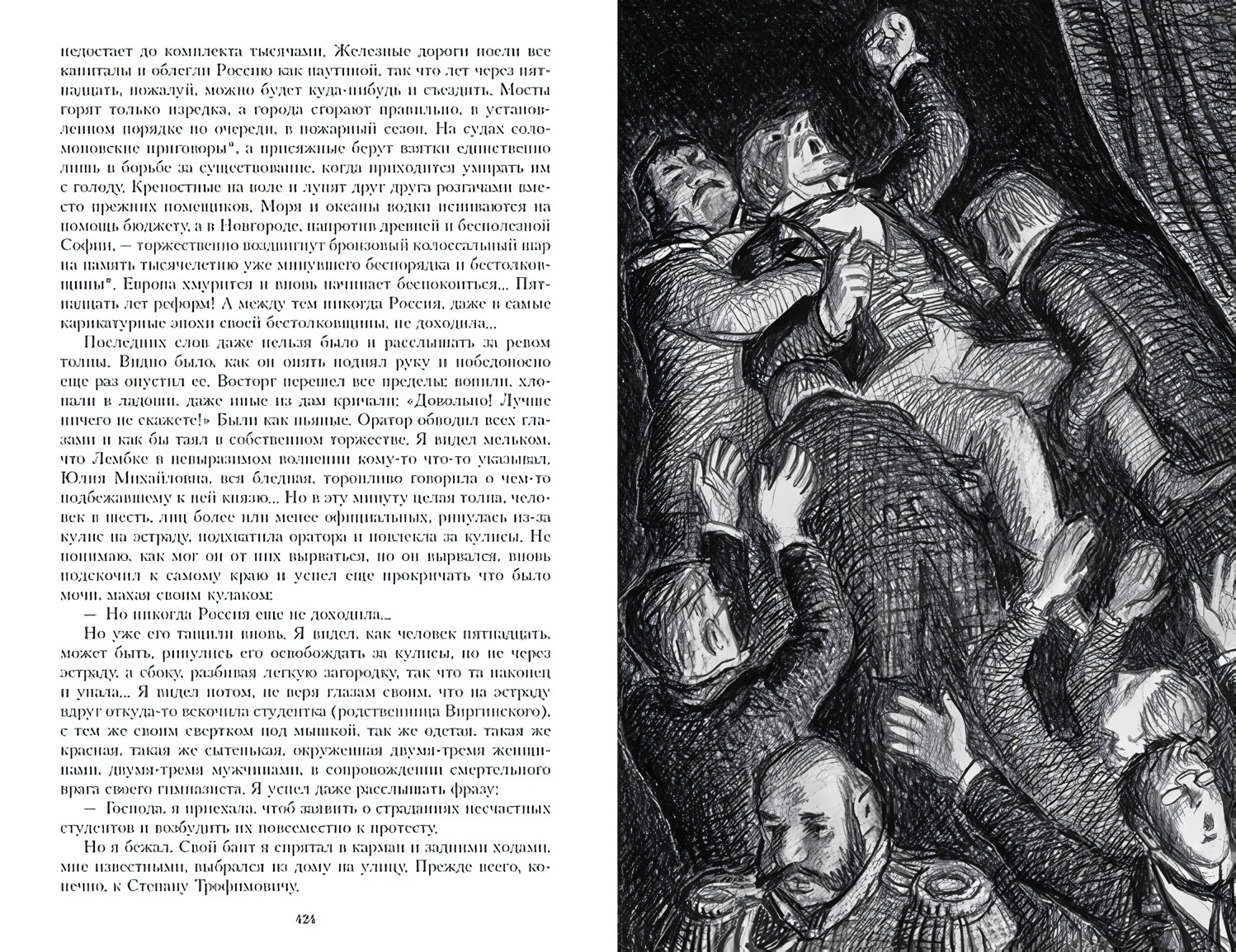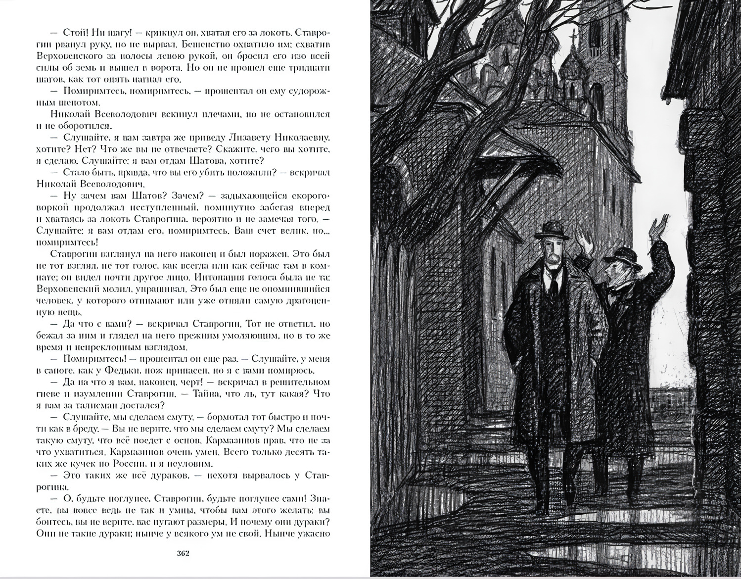 Artist Yuri Hershkovich to become Dostoevsky. In his illustrations, the darkness, abomination and anguish of human existence are refracted into evil caricature types juggling meaning, truth and other people’s lives.