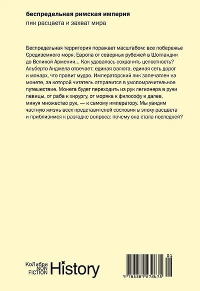 Alberto Angela answers: a single currency, a unified road network, and a monarch who rules wisely. The emperor's face is imprinted on a coin, which will take the reader on a breathtaking journey. The coin will pass from the hands of a legionary to a singer, from a slave to a surgeon, from a sailor to a philosopher, and then, through many hands, to the emperor himself. We will see the private lives of all the representatives of the class during its heyday and come closer to answering the question: why did it become the last?