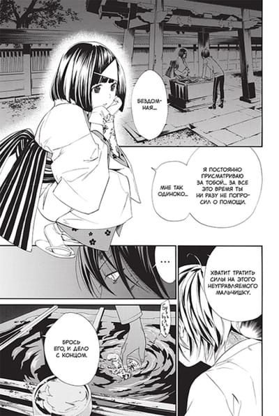 Every day brings a new problem for Yato. After his battle with Bishamon, he realizes he's too weak to handle her, and then, unexpectedly, his old friend, a relic known as the Stray One, comes to Yato's aid. But the appearance of the former relic provokes a fit of jealousy in Yukine, who has enough resentment against Yato that he decides to abandon his master. Recommended!