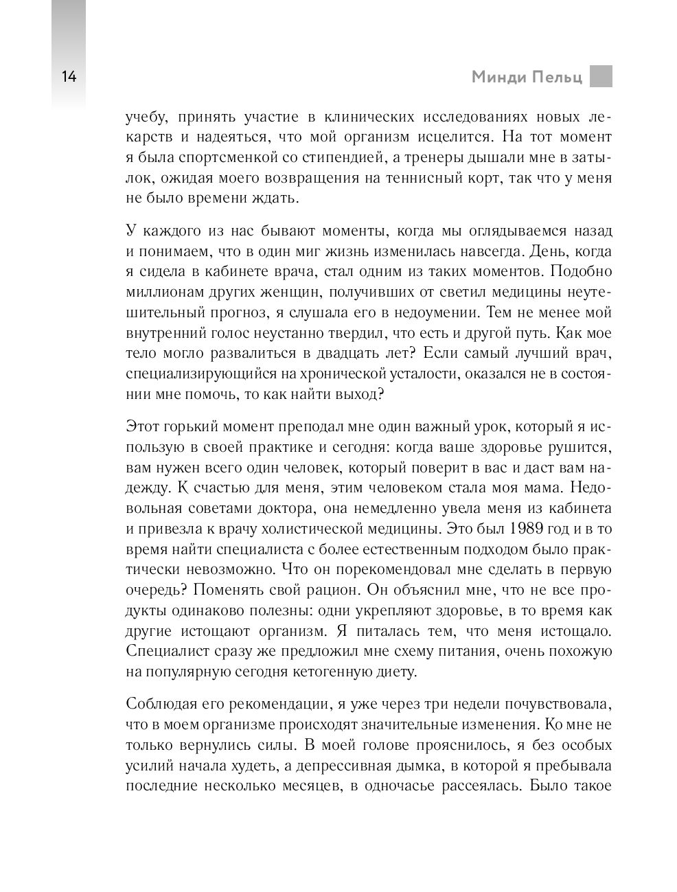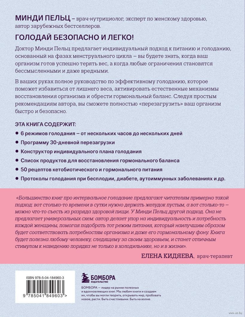 Women in particular find it difficult to keep in shape - if you indulge in a doughnut, the flanks come back. Dr. Peltz will help you move from the dead point and completely reboot your body with a 30-day program and 6 modes of fasting, which each reader will be able to "adjust" to the individual characteristics of her body. Dr. Mindy Peltz is a world-renowned women's health expert, best-selling author and blogger. She has restored slimness and beauty to thousands of girls.