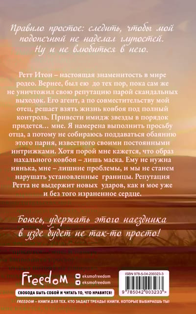 Rhett Eaton is a professional bull rider and a real celebrity in the rodeo world. Or rather, he was until he destroyed his reputation with a couple of scandalous antics. His agent, and my father, decides to take full control of the cowboy's life. It's up to me to clean up the star's image.