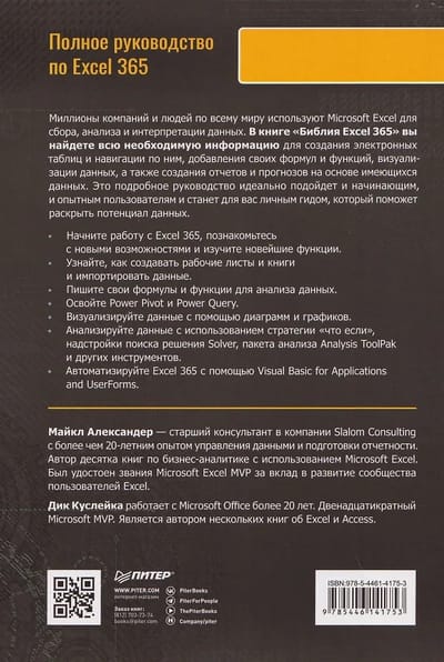 Millions of companies and individuals around the world use Microsoft Excel to collect, analyze, and interpret data. In "The Excel 365 Bible," you'll find everything you need to create and navigate spreadsheets, add your own formulas and functions, visualize data, and create reports and forecasts based on your data. This comprehensive guide is ideal for both beginners and experienced users, serving as your personal guide to unlocking the potential of your data.