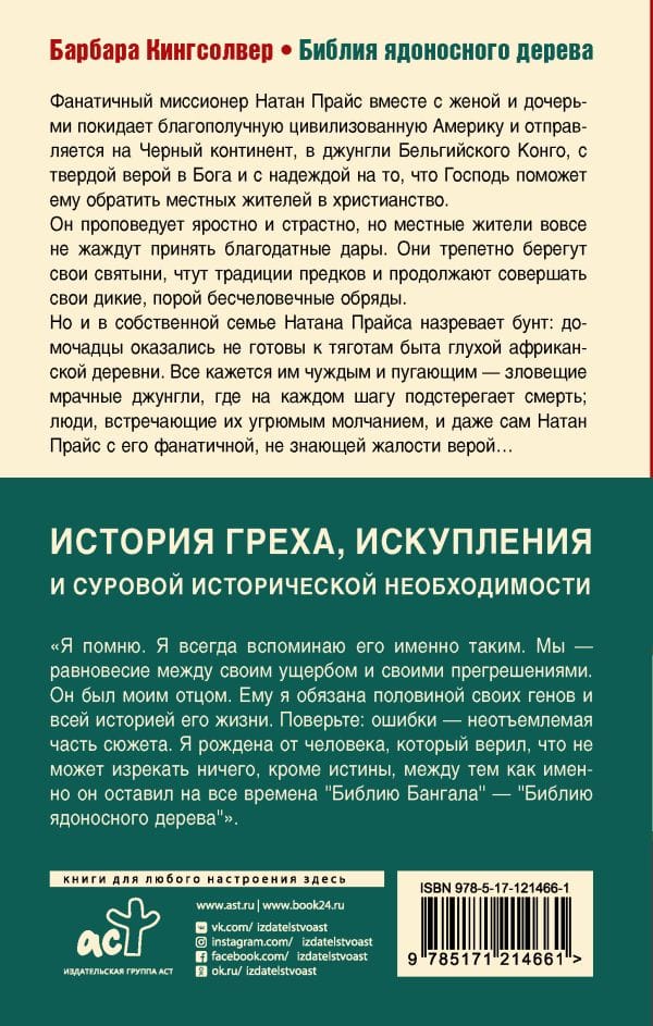 But in Nathan Price's own family a rebellion is brewing: the family is unprepared for the hardships of life in a remote African village. Everything seems alien and frightening to them - the ominous, dark jungle, where at every turn death awaits them, people who meet them with a sullen silence, and even Nathan Price himself with his fanatical, knows no pity faith ...