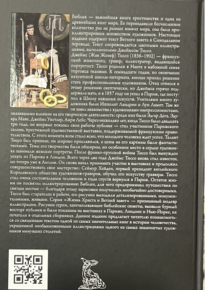 The Bible is the most important book of Christianity, one of the oldest books in the world and the most significant books in history. It has been reprinted countless times in different languages of the world, it has been illustrated by many talented artists. The beauty and diversity of the text of the Old Testament in this edition are presented in the Synodal translation. The text is accompanied by color illustrations made by the talented French artist James Tissot.