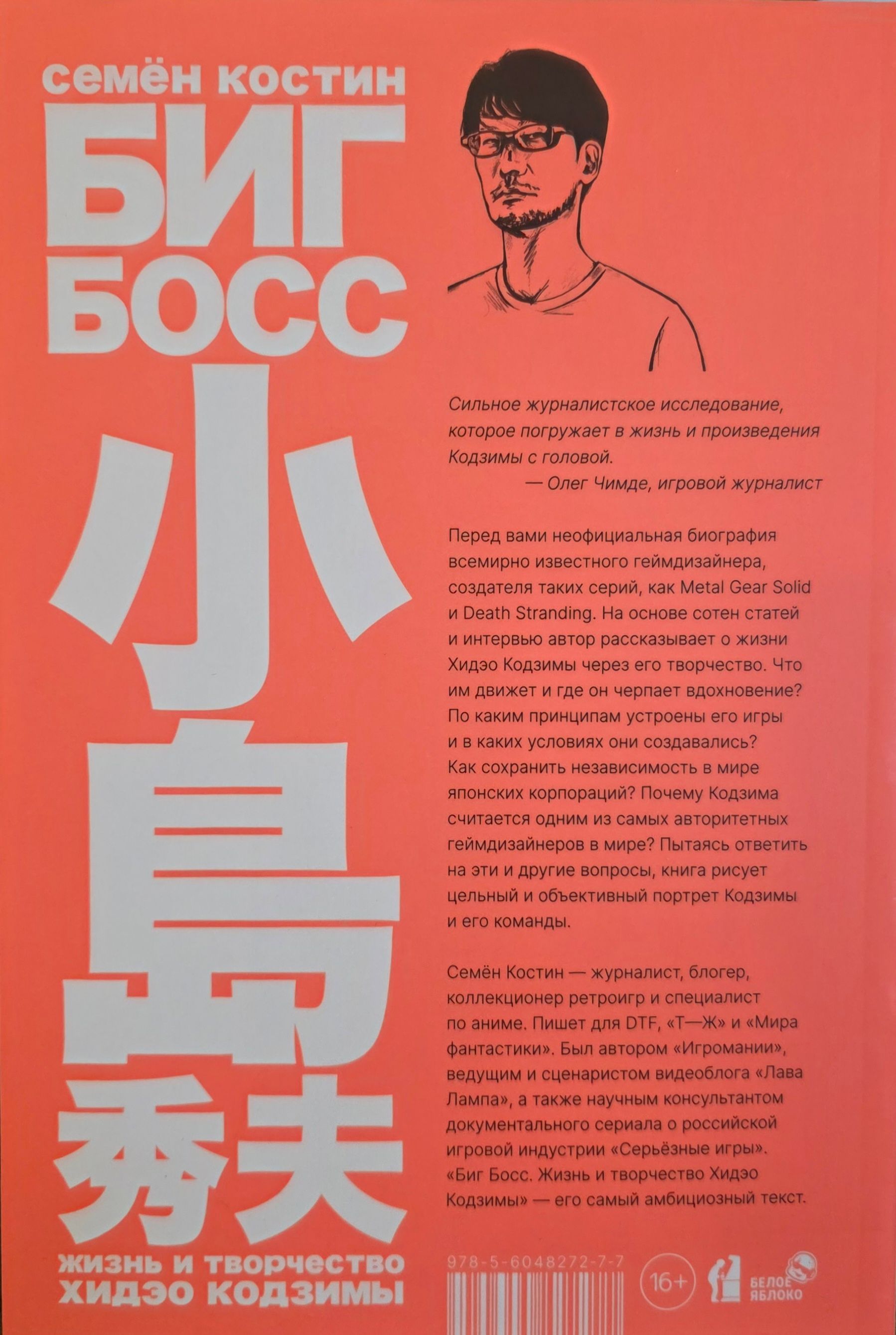 "Big Boss" is a detailed and fascinating journey into the world of the famous Japanese game designer Hideo Kojima. Having reviewed hundreds of third-party sources, numerous interviews and other materials, journalist Semyon Kostin wrote the first unofficial biography of Kojima. Here he is considered through the prism of the objects of his creativity: from the postmodern masterpieces Snatcher and Policenauts to the recognized blockbusters from the game series Metal Gear Solid and Death Stranding. The publication provides both sources of inspiration for Kojima and comprehensive information about how his games are structured and under what conditions they were created. How does he manage to maintain independence in the world of Japanese corporations? Why is he considered one of the most authoritative game designers in the world? Trying to answer these and other questions, the book paints a complete and objective portrait of Hideo himself and his team.