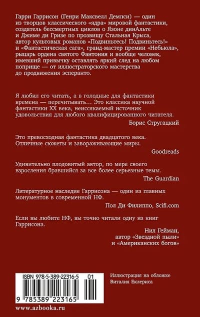 Terry Pratchett called this work of Harrison the funniest novel that exists in fantasy. In the "Fantastic Saga", enterprising Hollywood filmmakers, having no money, no script, no smart actors, go in a time machine to the harsh times of the Middle Ages to make a film about the Vikings - about how they discovered America. Indeed, why do you need money, why do you need a script, actors and scenery when you come to everything ready-made?.. Both “Bill - Hero of the Galaxy” and “Fantastic Saga” are included in the golden fund of world science fiction.