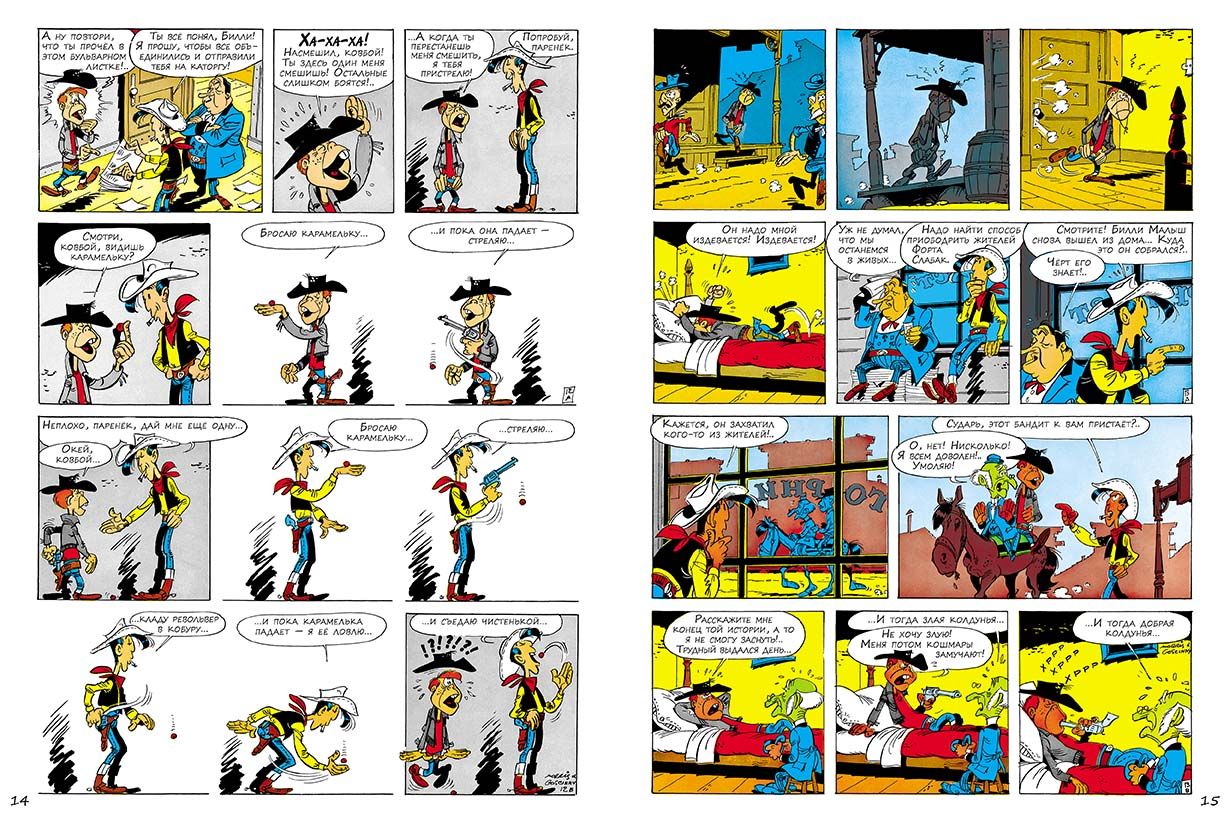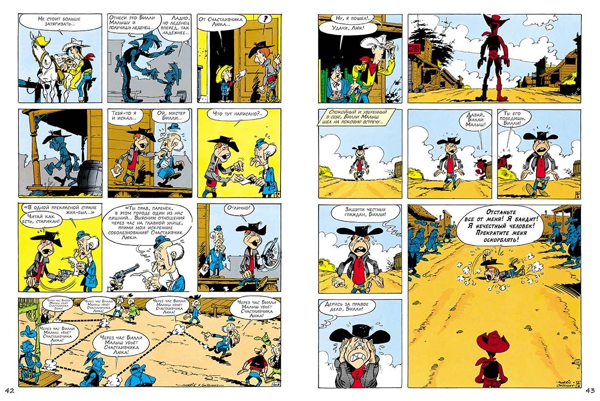 "Lucky Luke", along with "Tintin" and "Asterix", is one of the three most popular Franco-Belgian comics in the world. The total number of copies of the books in the series has passed 300 million. "Lucky Luke" has already been translated into more than 25 languages, and finally appeared in Russian! Lucky Luke is a charming and fearless lonely cowboy of the times of the conquest of the American Wild West. He is a real hero, and even a superhero, honest and fair, defender of all the weak and helpless. He always stands on the side of the law, helping local authorities to resist bandits and other villains. Like a true superhero, he has his own superpower: to shoot faster than his own shadow! Each Lucky Luke story is a thrilling and highly educational comedy western that reflects the real events surrounding the exploration of the Wild West. In the sixth book of the series, Luke confronts one of the Wild West's most legendary villains, Billy the Kid, also known as Billy the Kid, and helps the desperate residents of the town of Fort Slack regain their freedom and dignity.
