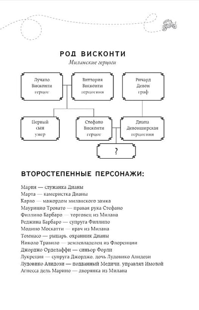 There is a curse on the Visconti family - all firstborns die, and if they survive, their mothers die. Death cannot be avoided. Diana is pregnant; this child is the long-awaited heir to the throne of Milan. Perhaps for the first time in the life of a great warrior Stefano Visconti is overcome by fear - he is afraid of losing his duchess. Stefano is ready to do anything, to take on the greatest sin ... to keep Diana alive. What is the price of their fragile happiness?