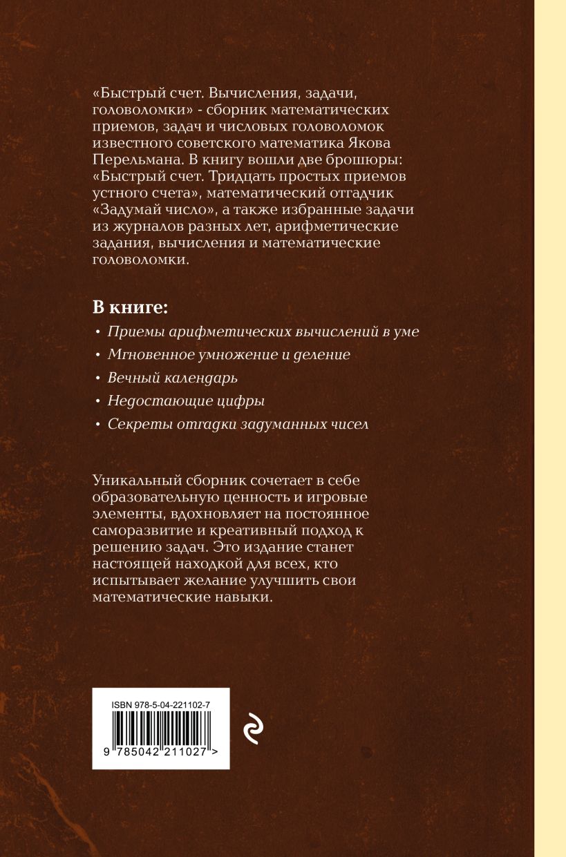 The collection "Quick Counting. Calculations, Problems, Puzzles" invites you to immerse yourself in the amazing world of numerical mysteries and logical riddles with Yakov Perelman.