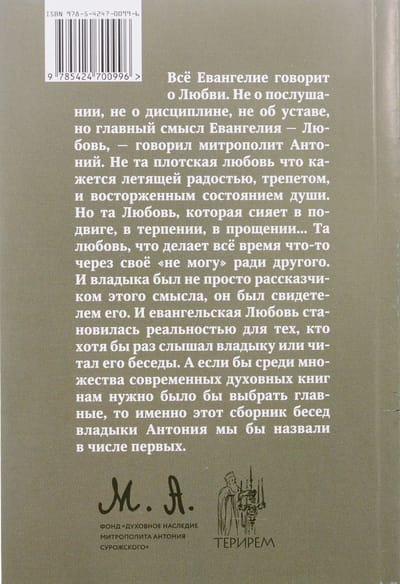 The book contains a series of conversations with Bishop Anthony of Sourozh, given by him in 1995, supplemented by a report on the topic of spiritual guidance (Moscow, 1987) and a conversation about Christian life (London, 1990).