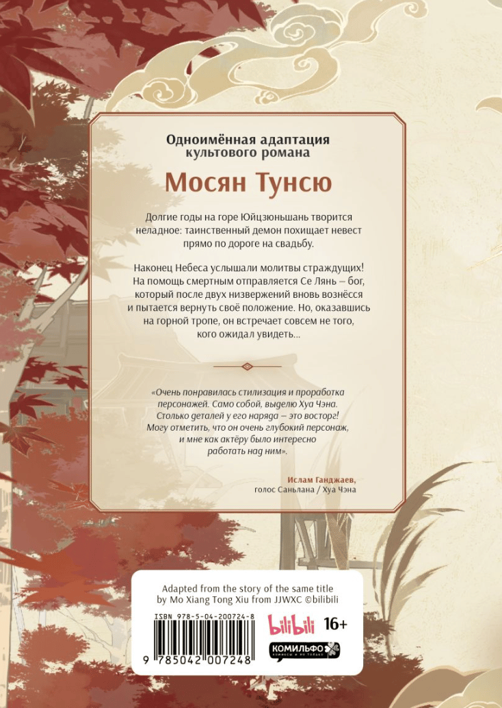 For many years, something strange has been happening on Mount Yujunshan: a mysterious demon has been kidnapping brides right on their way to the wedding. Finally, the Heavens have heard the prayers of the suffering! Xie Lian, a god who has risen again after two overthrows and is trying to regain his position, is sent to help the mortals. But, finding himself on a mountain path, he meets someone completely different from what he expected to see...