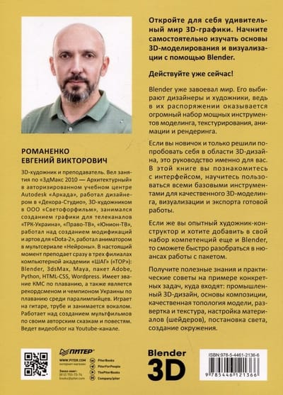 Discover the wonderful world of 3D graphics. Start learning the basics of 3d modeling and visualization with Blender. Get started now! Blender has already conquered the world. It is chosen by designers and artists, because they have a huge set of powerful modeling, texturing, animation and rendering tools at their disposal. If you are a beginner and have just decided to try your hand at 3d design, this guide is for you. In this book you will get acquainted with the interface, learn how to use all the basic tools for quality 3d-modeling, visualization and exporting finished work. If you are an experienced designer and want to add Blender to your set of competencies, you will quickly understand the nuances of working with the package. Get useful knowledge and practical advice on the example of specific tasks, which include: industrial 3D-design, the basics of composition, quality topology of the model, sweep and texture, setting materials (shaders), setting light, creating the environment.