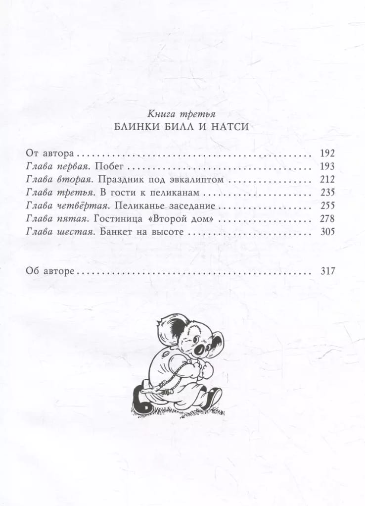 The present edition of Blinky Bill. The Adventures of the Naughty Koala included three books by the Australian writer and artist Dorothy Wall (1894-1942) about the adventures of the marsupial bear. They will appeal to adventure lovers, as well as to all children who are interested in the unique flora and fauna of the Green Continent.