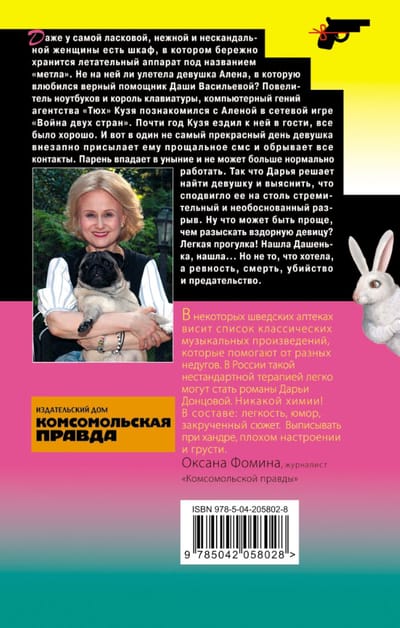 The lord of laptops and the king of the keyboard, the computer genius of the agency “Tyukh” Kuzya met Alena in the network game “War of two countries”. For almost a year Kuzya visited her, everything was fine. And then one day the girl suddenly sends him a farewell text message and cuts off all contacts. The guy gets depressed and can no longer work normally. So Daria decides to find the girl and find out what motivated her to such a rapid and unreasonable breakup. Well, what could be easier than finding a ridiculous girl? Easy walk! Found Dashenka, found... But not what I wanted, but jealousy, death, murder and betrayal.