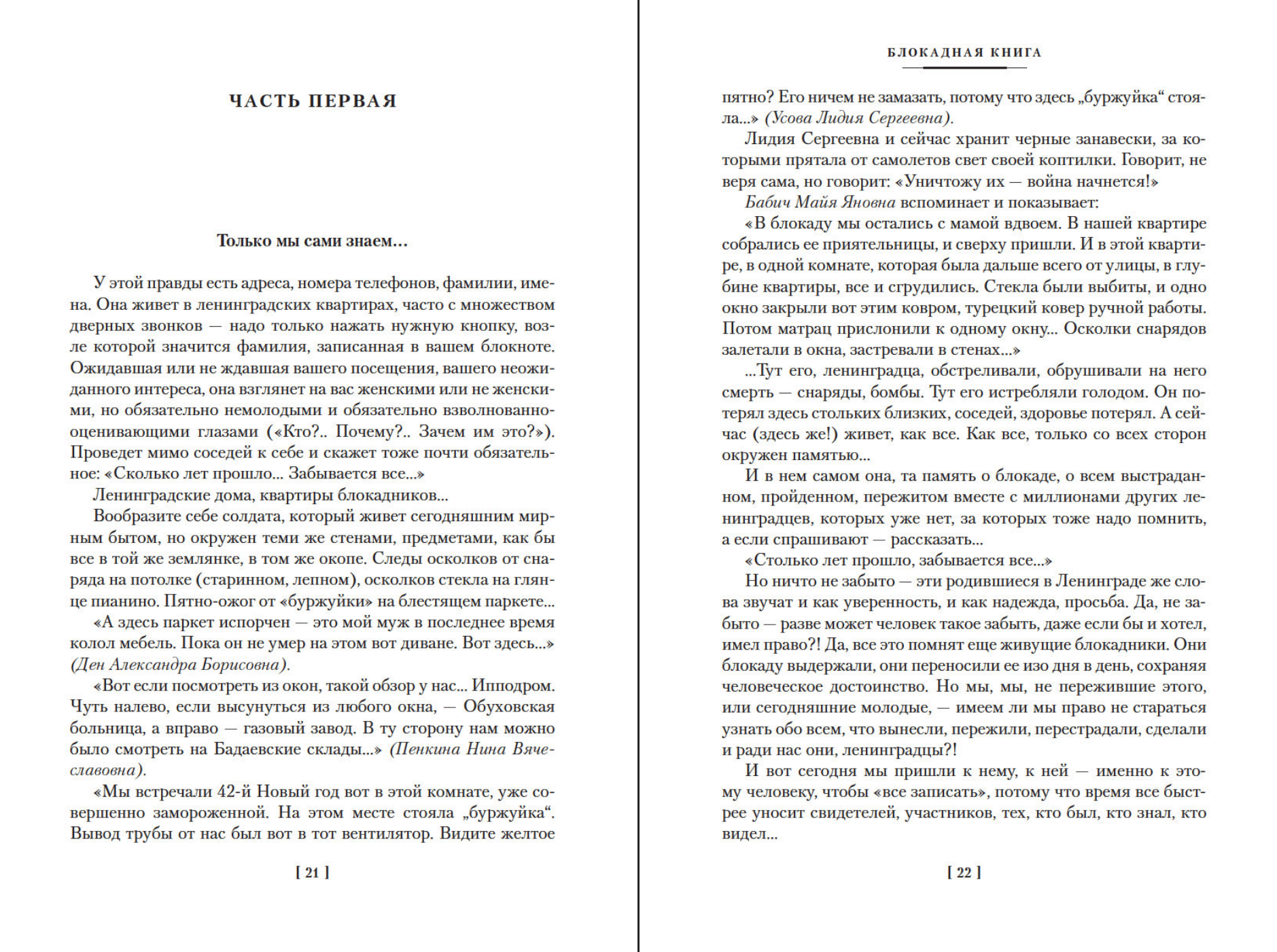 "Blockade Book" tells about the agony of besieged Leningrad, about the heroism of its inhabitants, about suffering and courage, about love and hate, about death and immortality. Based on interviews with eyewitnesses, documents, letters, it remains the most authentic, vivid testimony of the siege years, a book that everyone should read. This edition, in addition to the long-standing classic main text of the "Blockade Book", also includes materials about the history of its creation and numerous archival photographs of the blockade years.