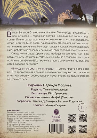 This book tells about life in besieged Leningrad during the Great Patriotic War. You will learn about the fortitude of ordinary residents of the besieged city, who were hit by cold and hunger, thousands of bombs and shells. Where did Leningraders get the strength to live, move, work in factories, put out lighters? Why was it necessary to perform Shostakovich's symphony, stage plays in theaters, save a hippopotamus in a zoo in a starving besieged city? You will get the answers to these questions by reading the book "The Behemoth of the Behemoth and the Leningraders", which is a continuation of the book "The Behemoth of the Behemoth and the Girl".