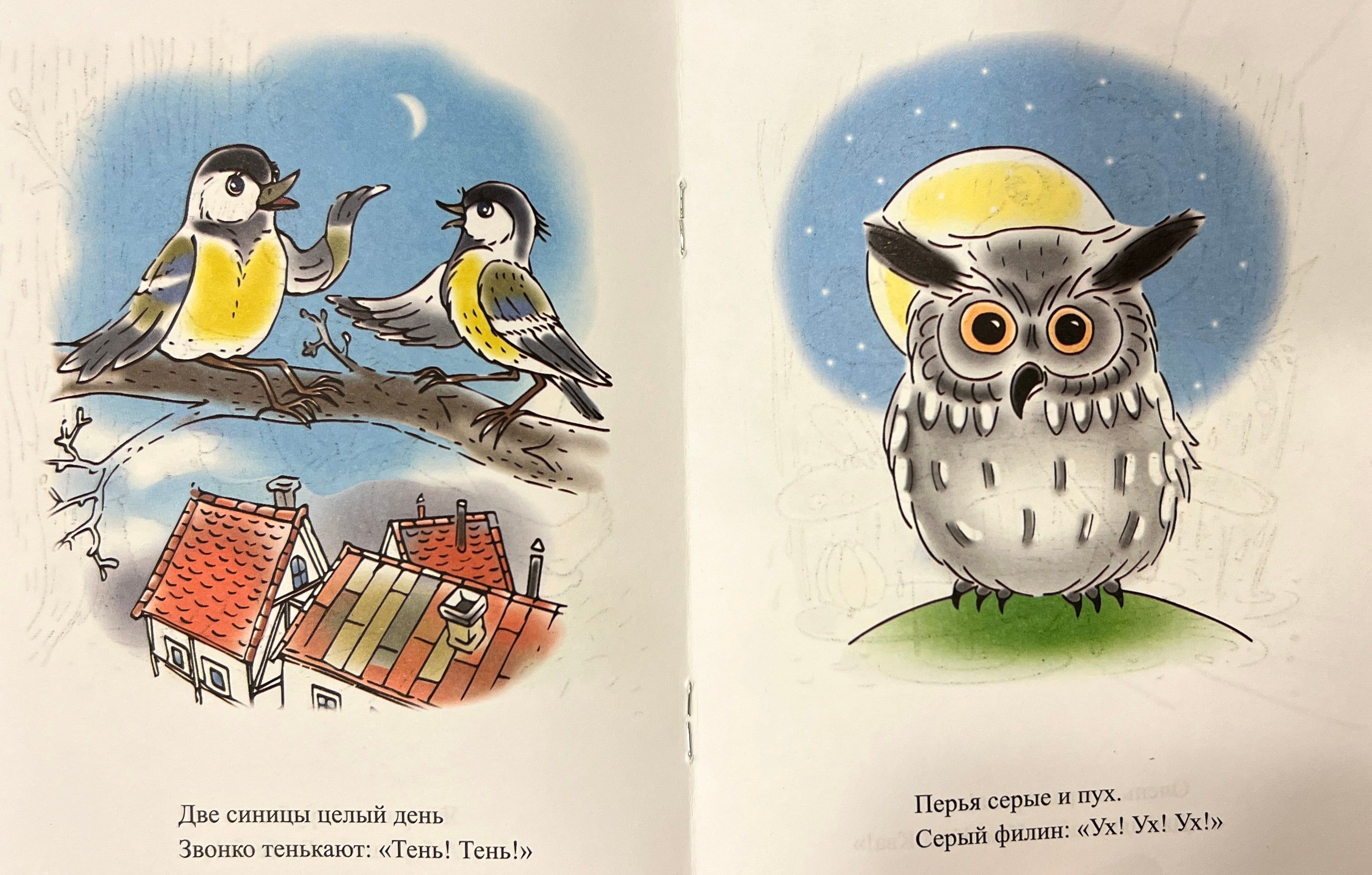 This notebook contains exercises for eliciting imitation sounds in children. These may be non-speaking preschool children with normal speech development or preschool children with speech disorders. Exercises can be used both at the stage of evoking the sounds of early ontogenesis (simple sounds of the Russian language), and at the stage of refining the pronunciation of these sounds. In the notebook are presented sound-imitations consisting only of sounds of early ontogenesis (except for the sound-imitation "mur", which includes the most difficult sound of the Russian language - the sound [p]). Each exercise is accompanied by a funny picture, which serves as a visual support and allows developing creative imagination in kids.