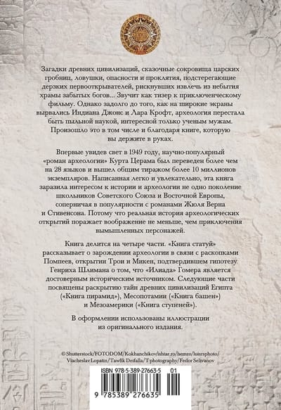 The mysteries of ancient civilizations, the fabulous treasures of royal tombs, the traps, dangers and curses that await the daring discoverers who risked extracting the temples of forgotten gods from oblivion... It sounds like a teaser for an adventure film. However, long before Indiana Jones and Lara Croft burst onto the big screens, archeology ceased to be a dusty science of interest only to learned men. This happened, among other things, thanks to the book you are holding in your hands. First published in 1949, Kurt Zeram's popular science "novel of archeology" was translated into more than 28 languages and was published in a total circulation of more than 10 million copies. Written in an easy and entertaining way, this book infected more than one generation of schoolchildren in the Soviet Union and Eastern Europe with an interest in history and archeology, competing in popularity with the novels of Jules Verne and Stevenson. Because the real history of archaeological discoveries is as striking as the adventures of fictional characters.