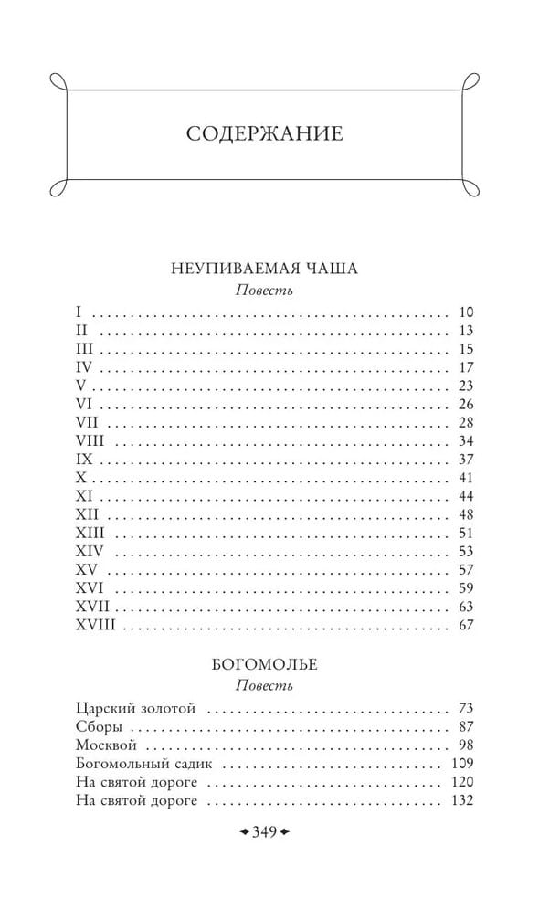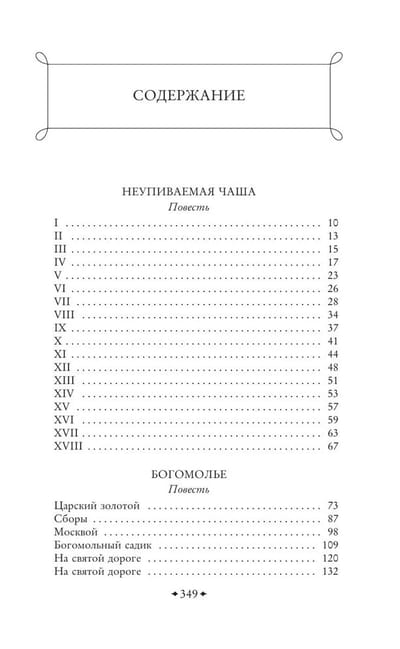 The book also includes the novella "The Inexhaustible Chalice," the story of the serf artist Ilya Sharonov, whose miraculous icon heals people; the essay "Old Valaam," about a visit to the Valaam Monastery; and the short story "Christmas in Moscow," inspired by childhood memories of celebrating Christmas with his family.