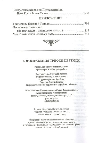 This edition is devoted to the services of Easter and the post-Easter period, up to the adjacent service of the Week of All Saints Who Shone in the Land of Russia. The texts of the services have been compiled so that the collection can be used both in the church and for home reading.