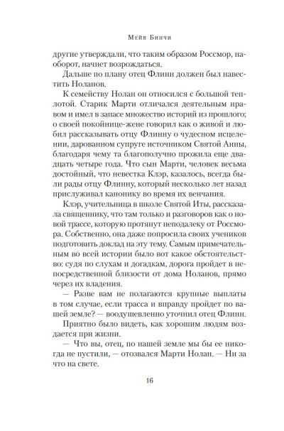 Irish writer and journalist Maeve Binchy (1940-2012) is well known not only in her homeland, but also around the world. In addition to her short stories, Binchy wrote more than half a dozen novels, and her books were consistently bestsellers and repeatedly won prestigious international awards. In the 1970s, Binchy published three collections of short stories, and quite successfully, but the real fame came to her after the release of her first novel "Light a Candle" (1982). "Hawthorn Forest", written in 2006, received the warmest reviews from readers and critics. On the outskirts of the Irish town of Rossmore grows Hawthorn Forest, where the spring of St. Anne beats. Some assure that this place has miraculous powers, others consider it a fetish around which ridiculous superstitions are planted. There are rumors that soon a highway will be built around the city, which means that the forest will have to be uprooted and the source will be destroyed. But people from generation to generation have come here to share their dreams and fears ... Undoubtedly, the townspeople will benefit from the construction of the new road, but won't something immeasurably more valuable than modern comfort be lost? When a choice has to be made between good traditions and the promises of the future, passions are running high at Rossmore....