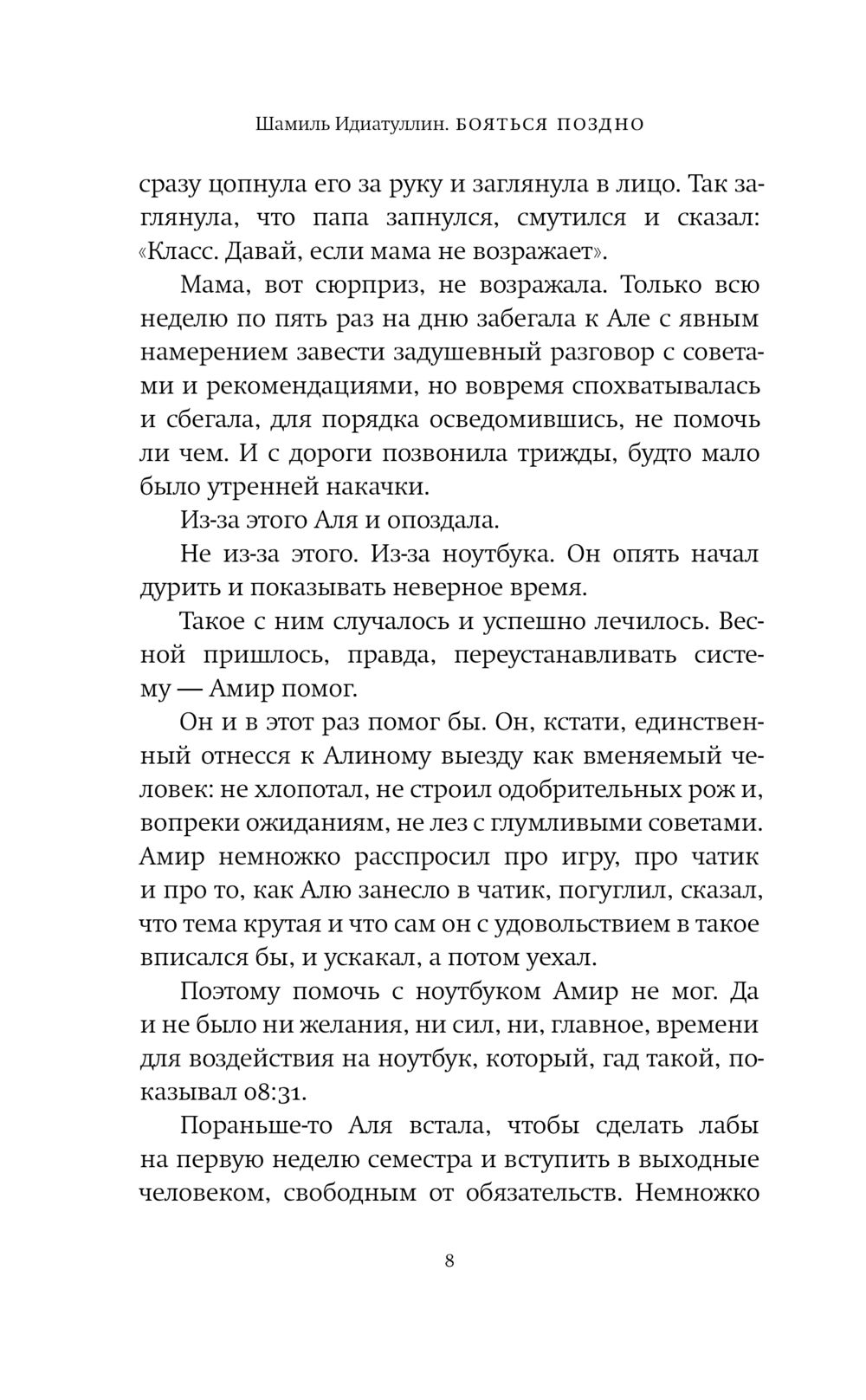 Shamil Idiatullin's book begins like a youth movie: a group of students come to spend New Year's vacation out of town. They have known each other for a long time on the Internet, and now at last there is an occasion to spend time in a fun and useful way, having arranged not only shashliks in the fresh air, but also a battle in a new video game. After a series of recurring events, invariably ending in the death - not virtual, but quite physical - of almost the entire team, the protagonist named Alya realizes that she is stuck in these vacation days. And the movie timeloop with a limited number of attempts to return to the beginning or even break out of the cycle is not yet the most unsolvable task: nearby, it seems, a large-scale terrorist attack is being prepared. And only Alya can get everyone out of the tightening noose. Well, as can - will try: "She got the answers to the six classic questions. It didn't make it clearer. It made it scarier."