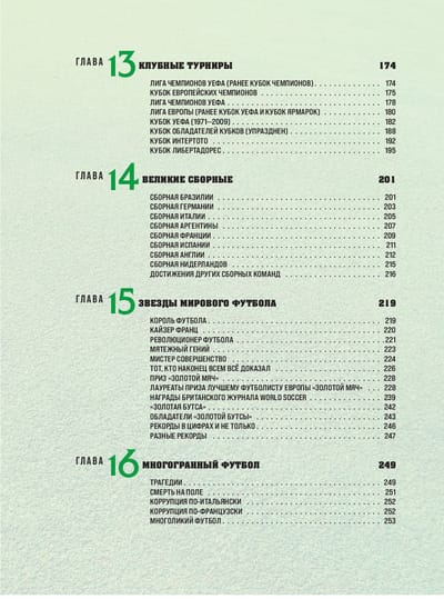 - biographies and achievements of great players such as Pele, Cristiano Ronaldo, Lionel Messi;