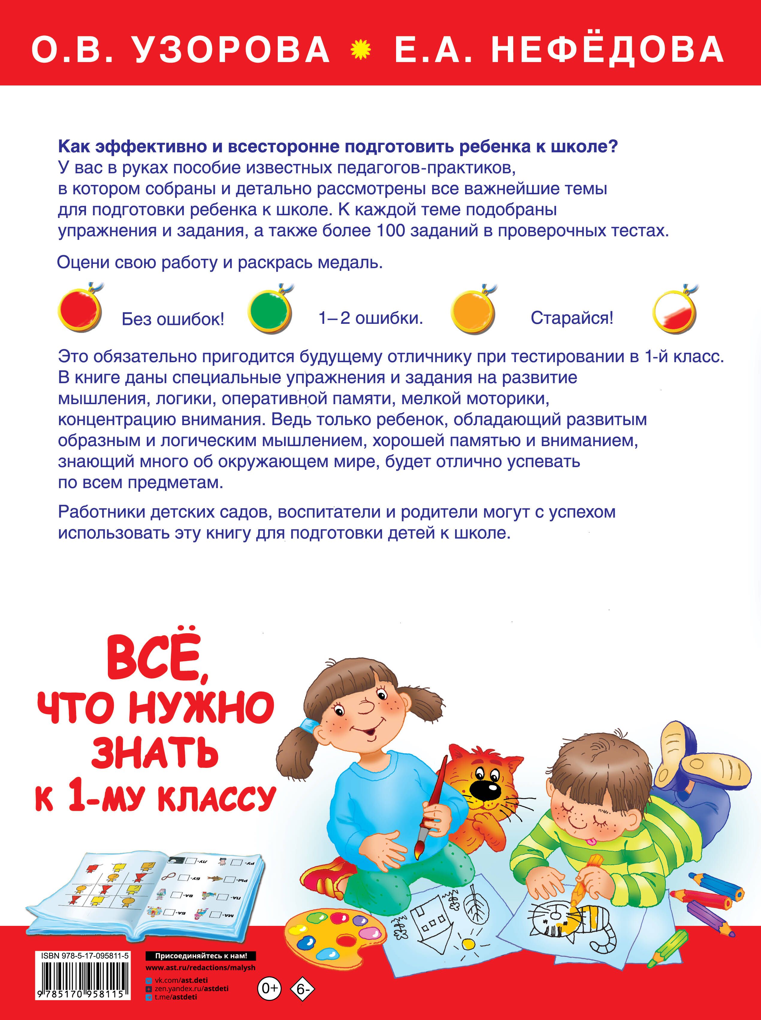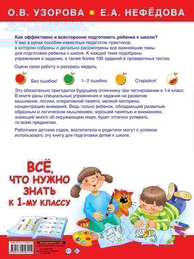 In the manual of well-known teachers-practices, all the most important topics for preparing a child for school are collected and considered in detail. Exercises and tasks are selected for each topic, as well as more than 100 test tasks to test the knowledge gained.