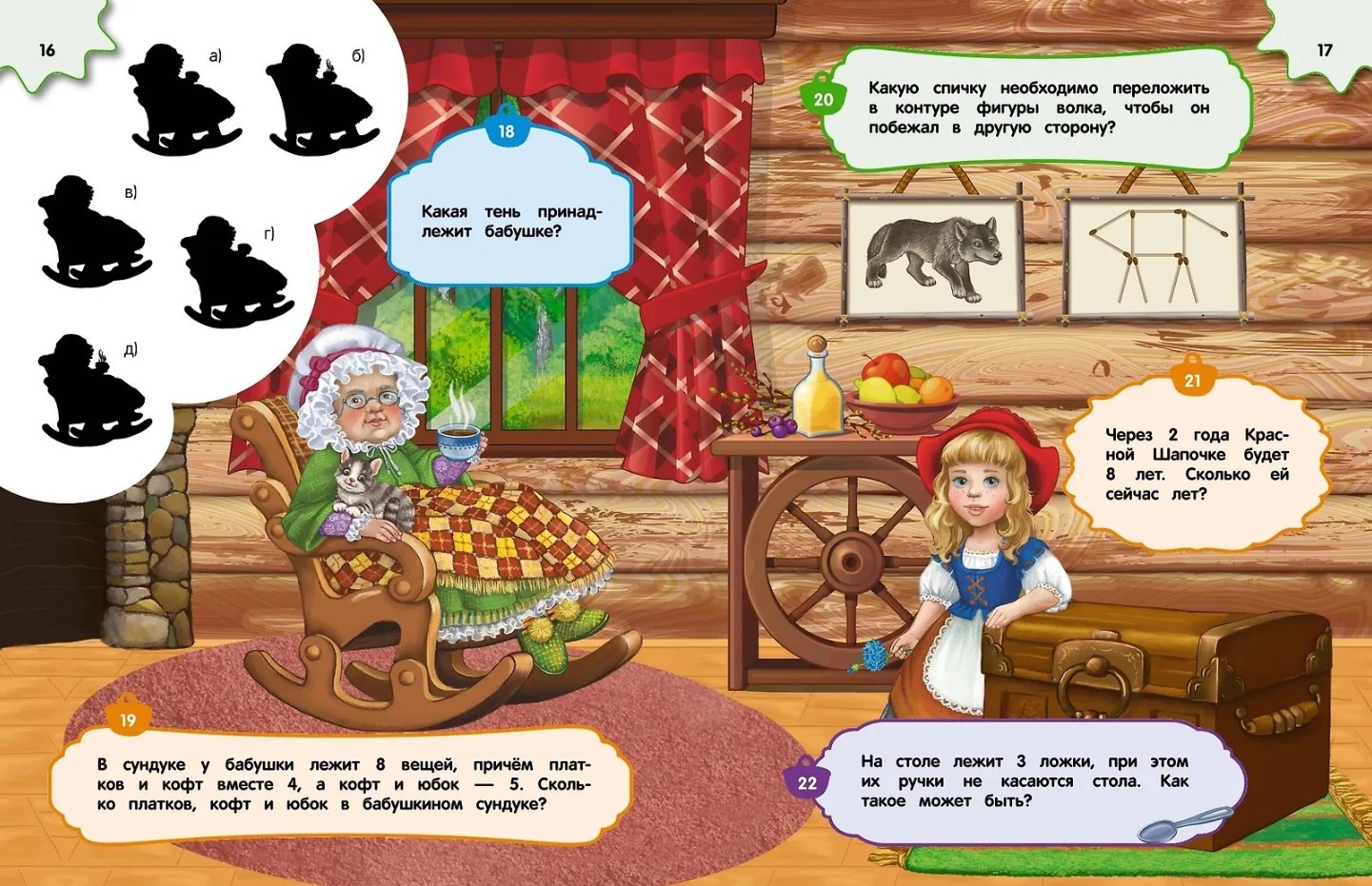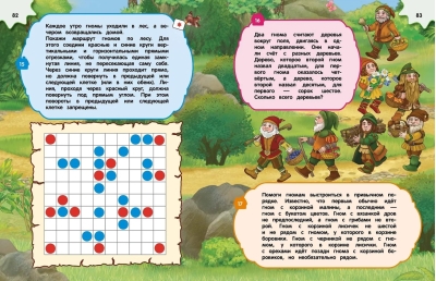 This large book of logic games and math problems with colorful illustrations based on popular fairy tales is suitable for boys and girls aged 7, 8, 9, and 10. It's perfect for independent study, organizing intellectual competitions at children's parties, and for group or individual work at school. It's an indispensable resource for parents and teachers seeking to ensure their child is well-prepared for math lessons. It includes puzzles, crosswords, mazes, brainteasers, and numerous tasks testing logic and attention. Algorithms for solving unusual logic problems are provided, sparking interest and a desire to achieve results. Regularly completing the tasks helps develop confidence in mastering any exercise from the school curriculum.