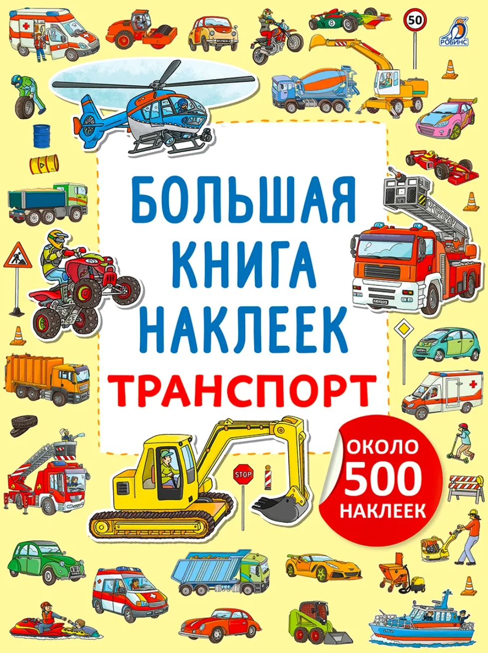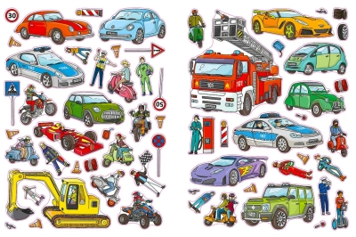 This large book features 25 themed environments for young car enthusiasts: a construction site, a racetrack, a city, a port, the sea, a firefighting mission, and more. With 500 stickers, children will learn about various cars, racing cars, construction equipment, police vehicles, fire trucks, rescue vehicles, and other types of transport.