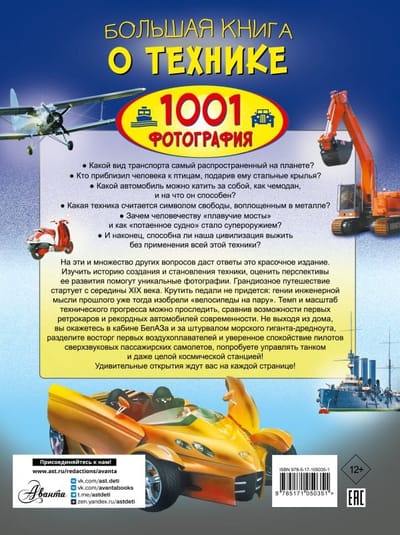 To understand the scale and speed of technical progress, it is not necessary to study history yourself, starting with the invention of the wheel. It is enough to open this book and see with your own eyes the genius of human engineering. Here you will see the most outstanding examples of technology - from retro cars and the first sailing ships to modern supersonic aircraft and space stations. Unique photographs will allow you to examine these machines in detail and imagine their real size and appearance. And from informative articles you will learn what different types of technology are intended for, how they work and are used by people. And if some technologies are already outdated and have become history, then others - the same wheel and sail - are still used. All the most interesting and incredible facts about technology - in one book!